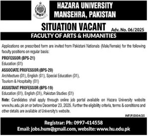 The last date to apply for this job is 23rd December 2025.Hazara University Jobs 2025 Advertisement