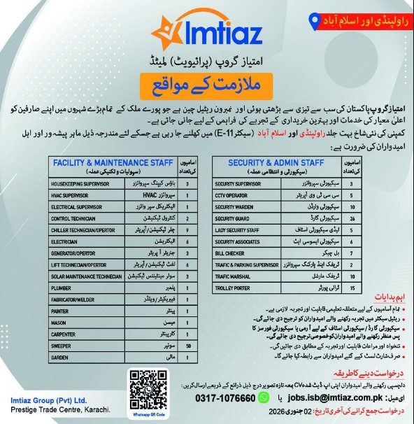 Vacancies Details Of Imtiaz Group Pvt Ltd Jobs 2025 In Islamabad