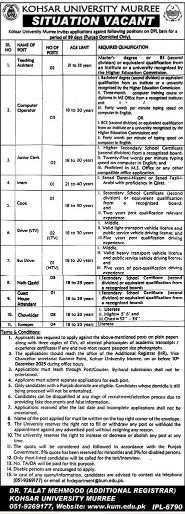 Vacancies Details Of Kohsar University Murree Jobs 2025