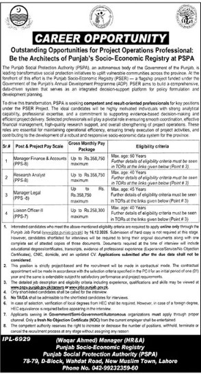 The last date to apply for this job is 16th December 2025.PSPA Jobs 2025 Advertisement