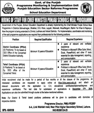 Candidates, if you are seeking School Education Department Jobs 2025 in Lahore, Apply Online yes. Then it would help if you tried to complete the School Education Department Jobs because here you can easily apply for these vacancies: District Coordinator and Tehsil Coordinator.